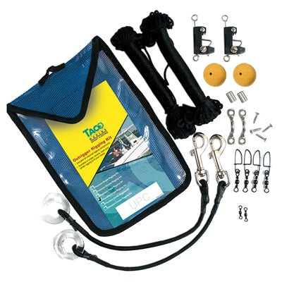 Taco Marine / Outrigger Standard Single Rigging Kit (RK0001SB) OR RIGG KIT BLK LNE STD   To rig 1 pair of outriggers up to 22'. Kit includes: (2) Release clips, shock cord with chrome plated snaps and glass eye, barrel swivels, snap swivels, crimps, stainless steel pad eyes and...