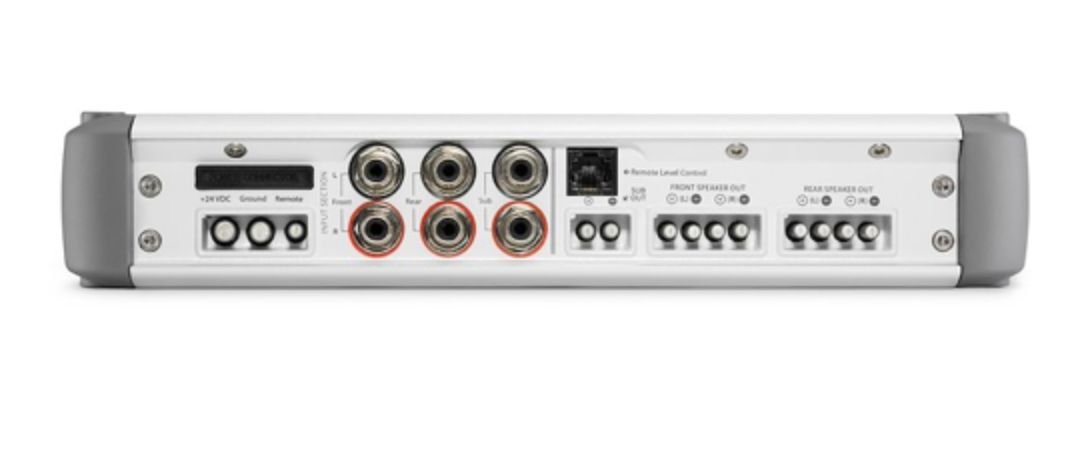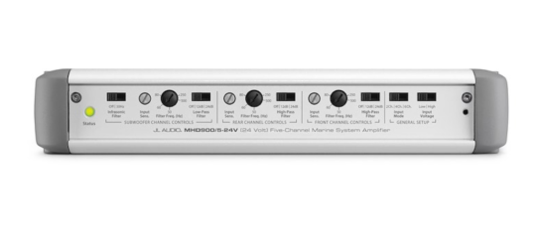 While extremely compact, this amazing amplifier will comfortably drive a complete high-performance marine audio system: that is, four satellite speaker systems and a subwoofer system... with a very serious 900 watts of power!